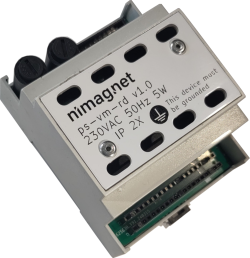 A versatile DIN-mounted power supply, voltage measure and relay drive unit.